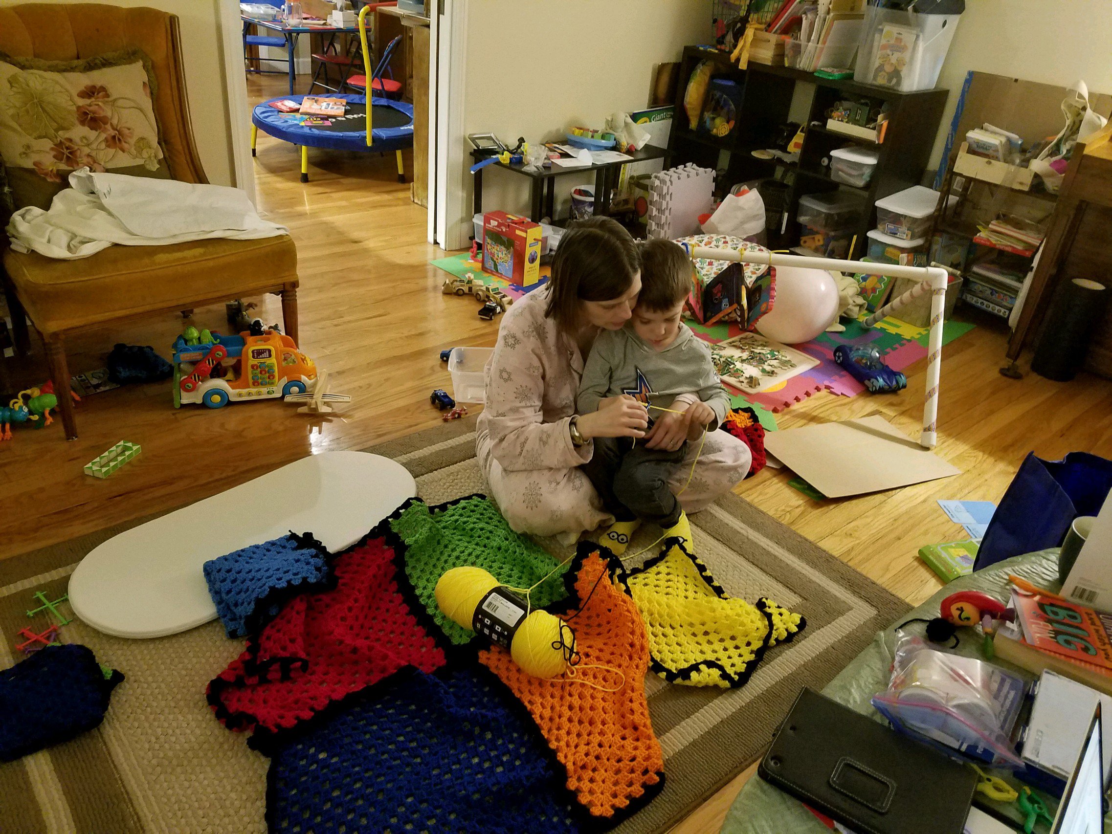 Jack wants to learn how to “knit”. We worked on a single crochet chain. We’ll work on the terminology soon.